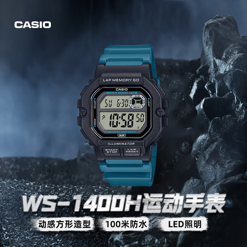 防水穿搭手表 潮流腕表高颜值夏季 Casio旗舰店WS 1400H新款