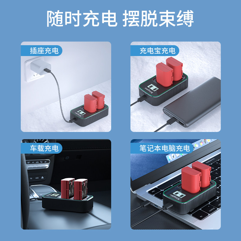 90D 70D 劲码 5D4 5DS 5d2 E6NH电池充电器QC3.0快充适用佳能R7二代R6 5DMark4单反相机6D2 60D 5D3 80D