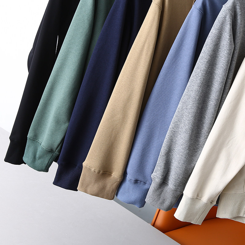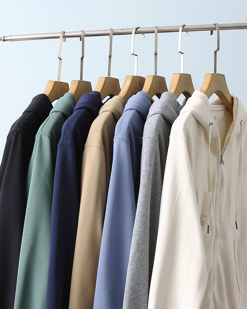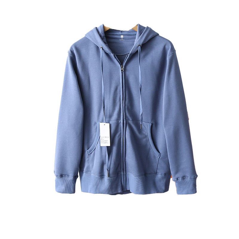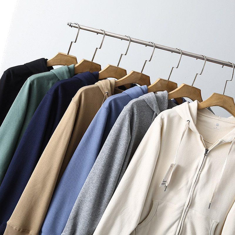 外贸纯色连帽休闲开衫 日系简约 男士 秋季 卫衣潮 水洗针织毛圈棉