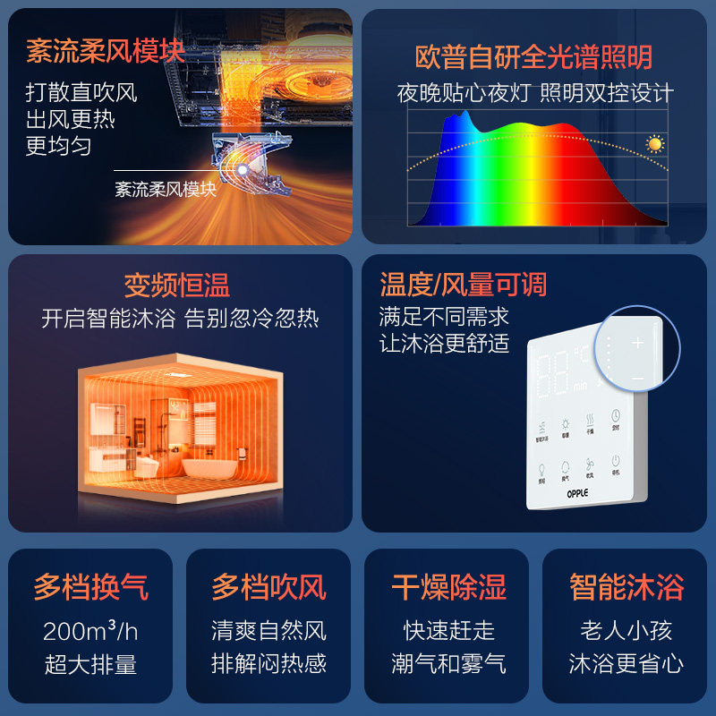 欧普照明柔风抱抱暖风暖浴霸集成吊顶卫生间暖风机换排气扇浴室灯