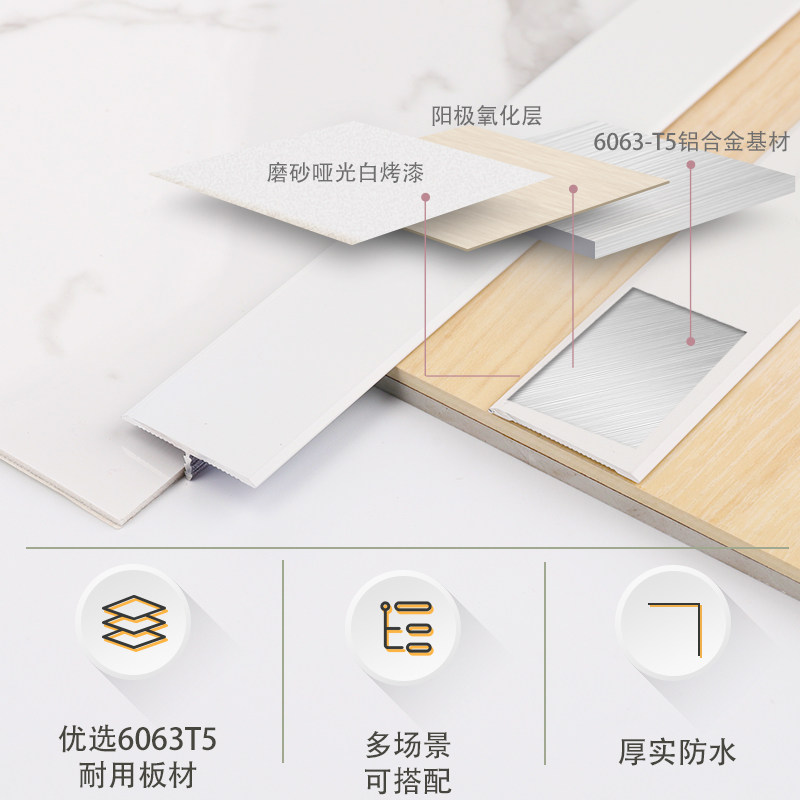 白色金属T型一字平板条收边条哑光白铝合金装 饰线背景墙瓷砖扣条