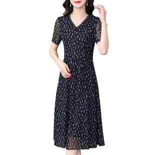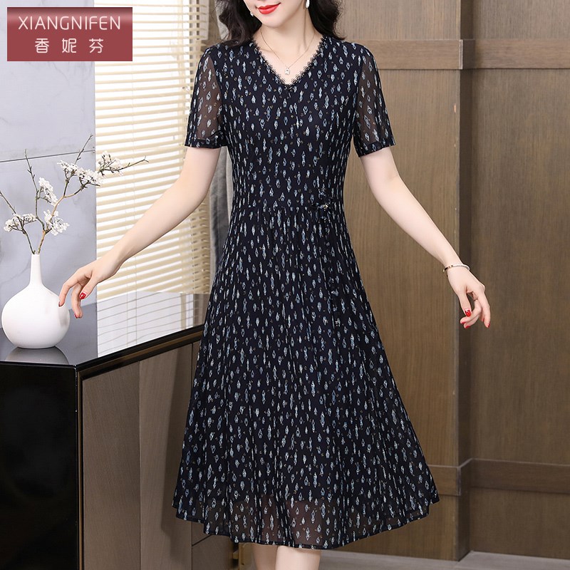 洋气高贵修身 夏装 裙 轻奢高级感中年妈妈连衣裙2024新款 香妮芬夏季