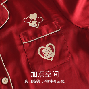 女夏天结婚男本命年新婚家居服套装 情侣睡衣红色冰丝2026夏季 短袖