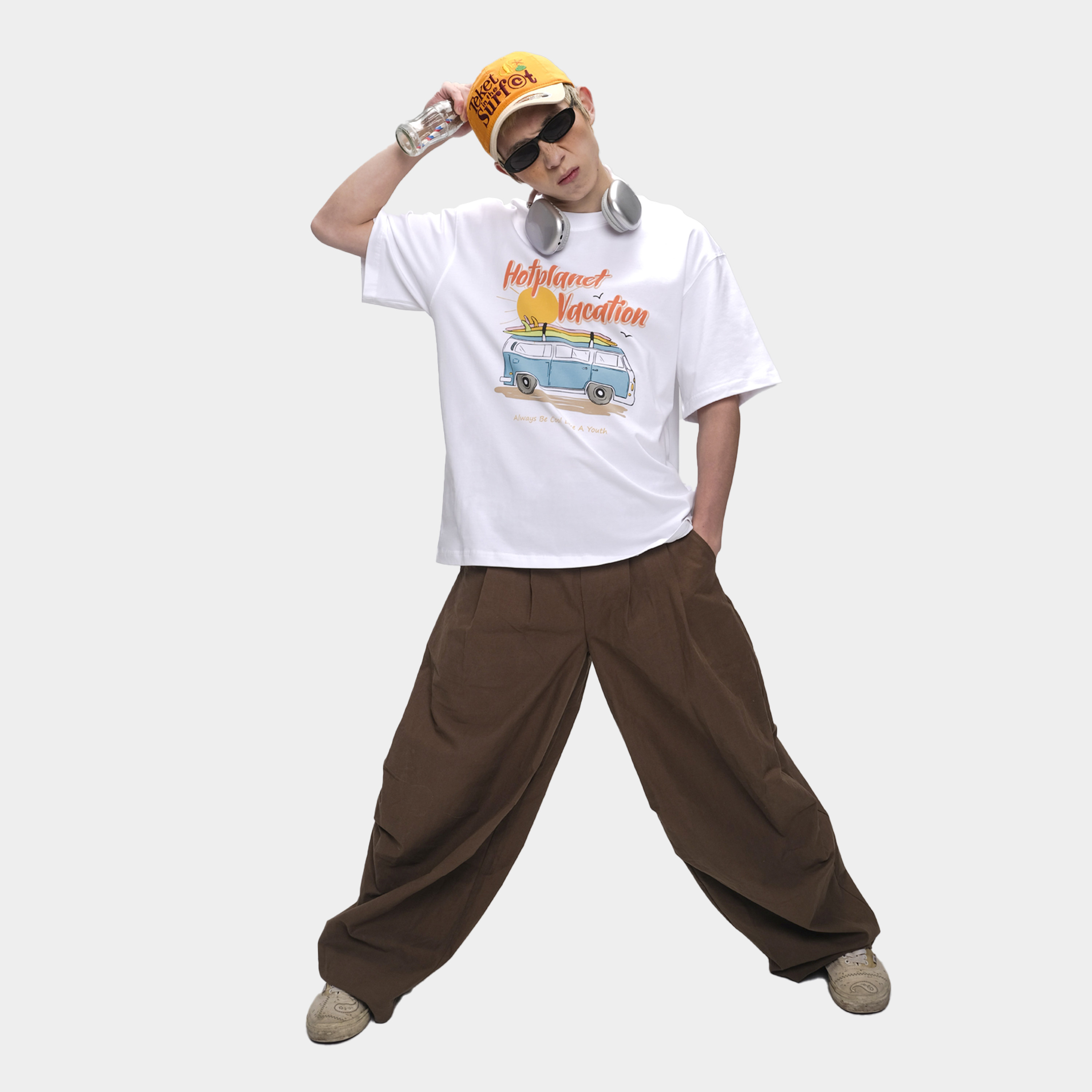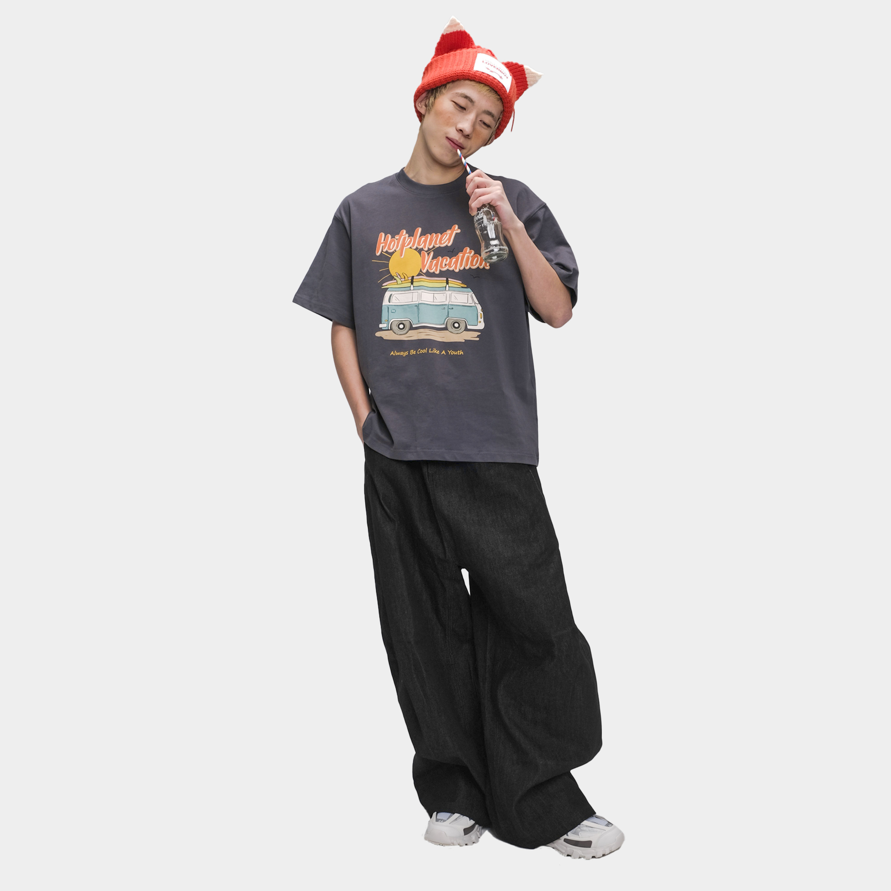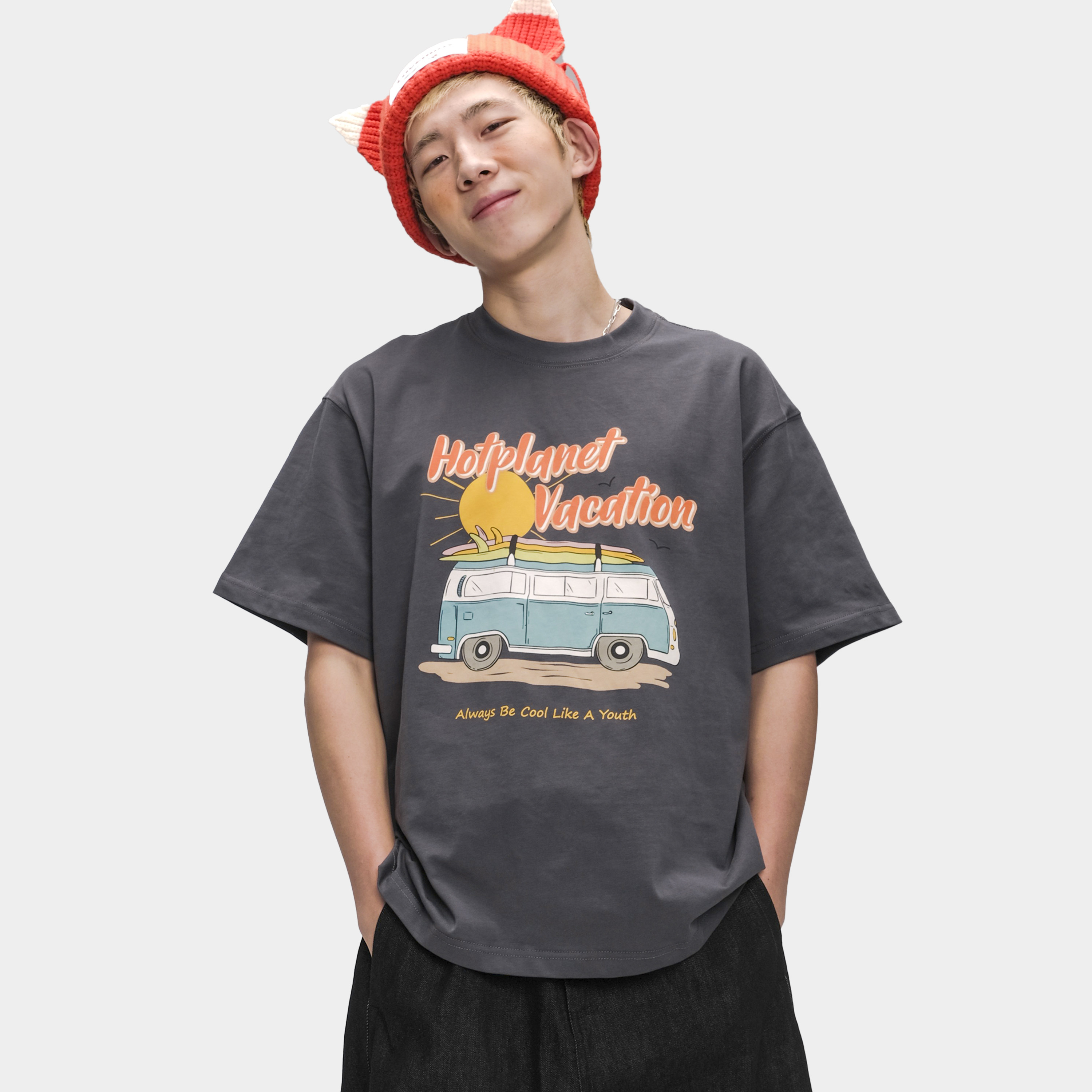 HOTPLANET短袖 男女情侣夏日度假245g灰色纯棉宽松印花T恤 2026新款