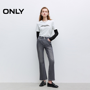 新款 牛仔裤 高腰修身 九分裤 女 舒适透气微弹喇叭裤 ONLY2026春季