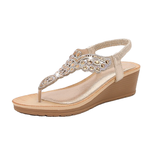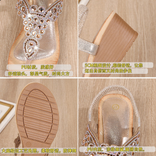 波西米亚民族风水钻坡跟女鞋 新款 女2026年夏季 女士夹趾罗马凉鞋