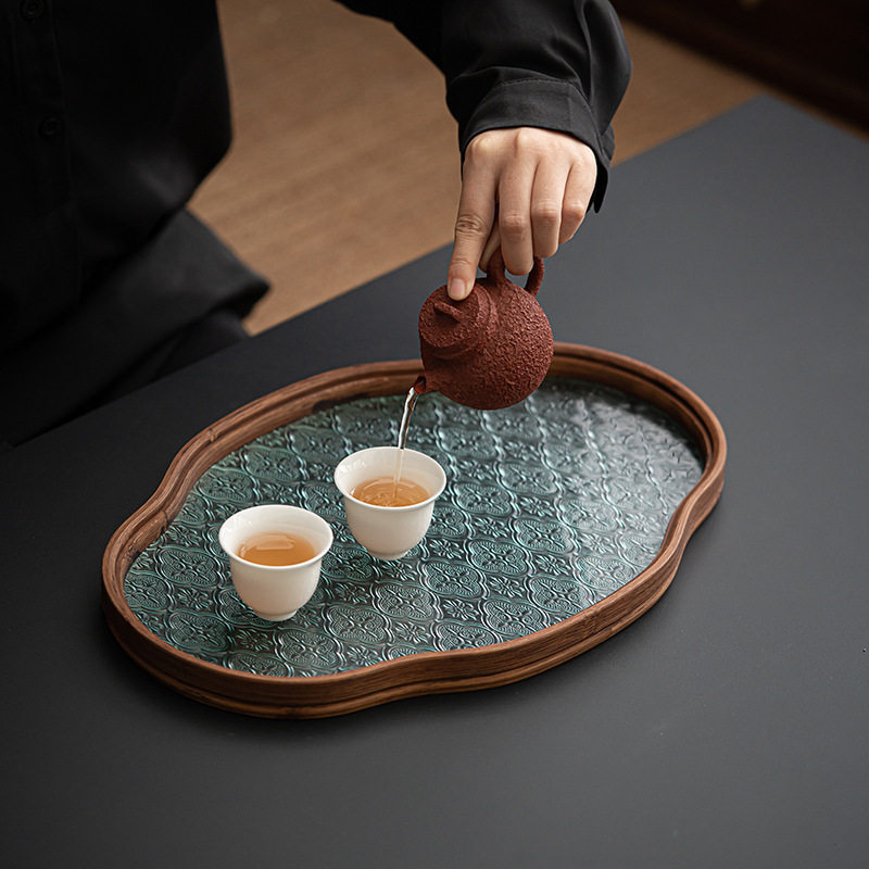 茶室水果点心盘 海棠花玻璃托盘 功夫茶具 HOME家居日式 MOMO