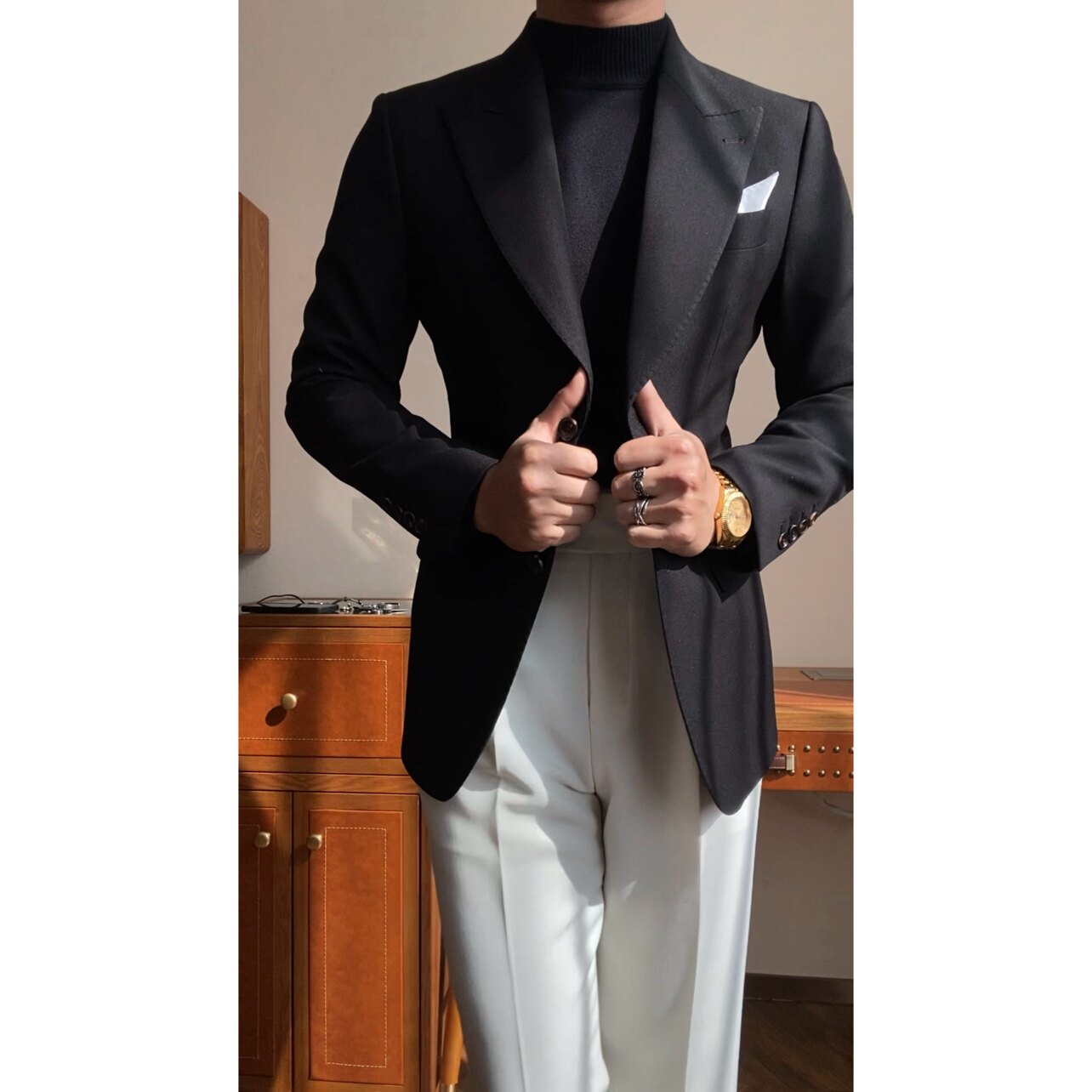 时尚 气质优雅绅士款 休闲戗驳领单排扣单西服外套 男士 新款