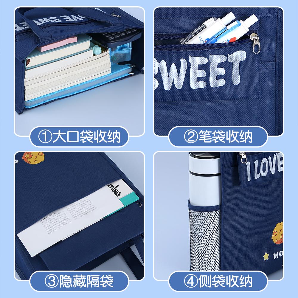 补习袋手提袋拎书袋小学生用男孩书包文件袋帆布美术袋补习班作业文件试卷袋收纳袋儿童学习补课包拉链式 定制