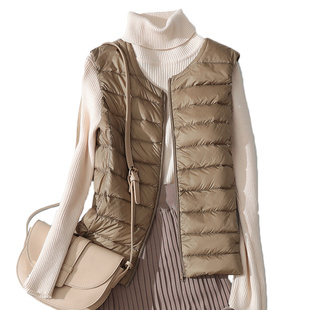 内搭羽绒内胆背心反季 轻薄羽绒马甲女短款 圆领白鸭绒坎肩百搭大码
