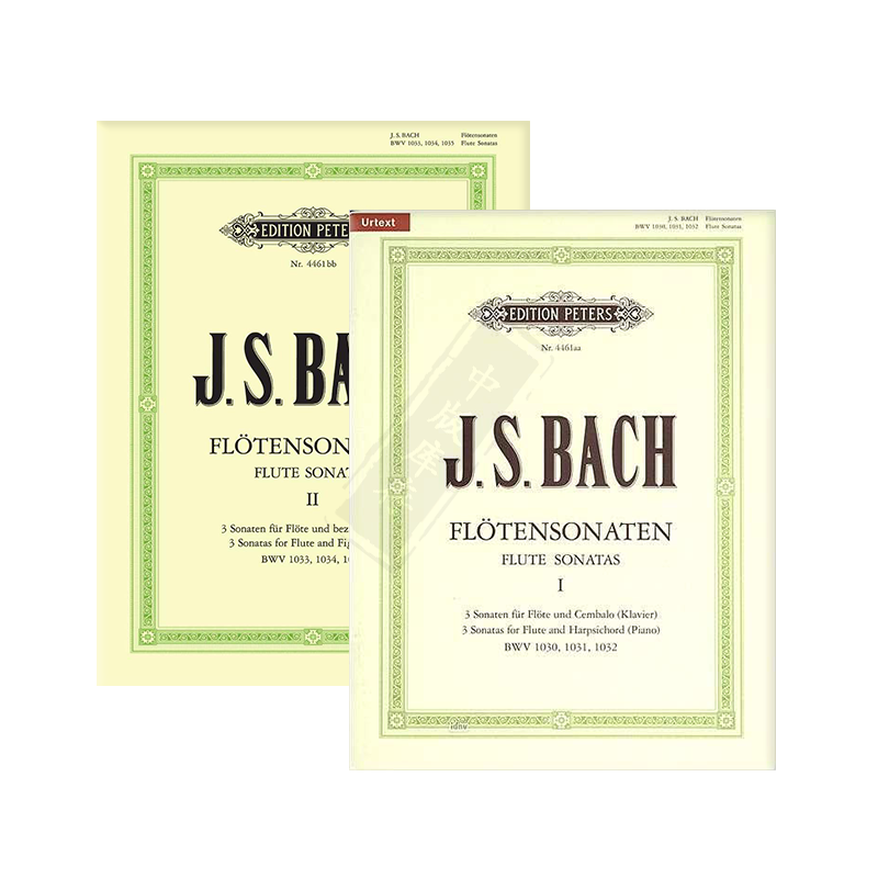 Figured 全套共一至二卷 Bach 乐谱书 巴赫 Vol and Bass Flute 彼得斯原版 4461bb EP4461aa Sonatas 长笛奏鸣曲集