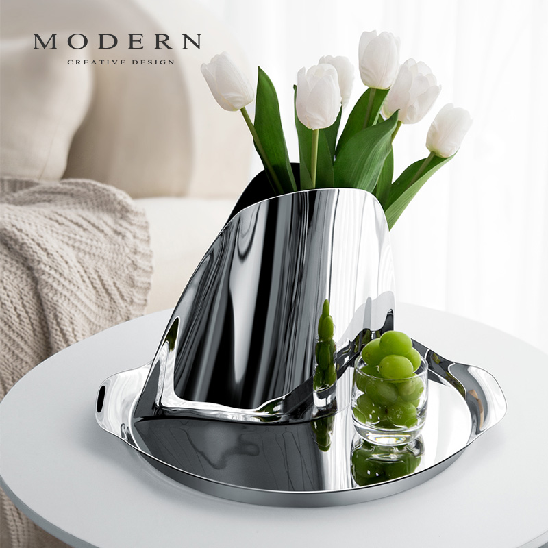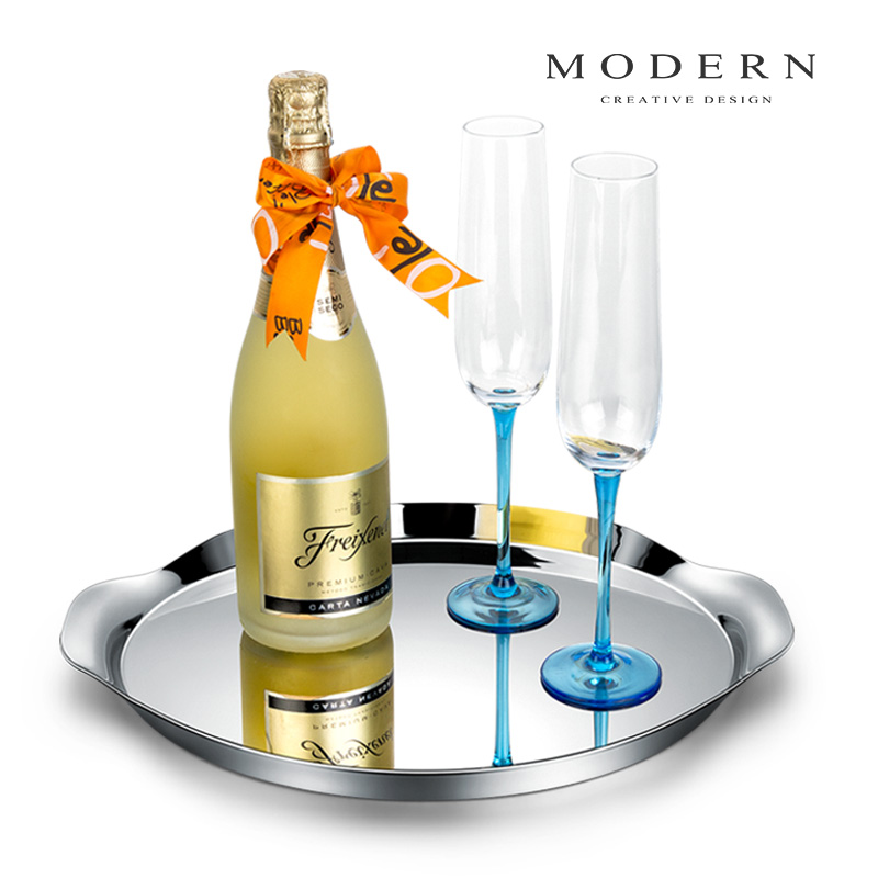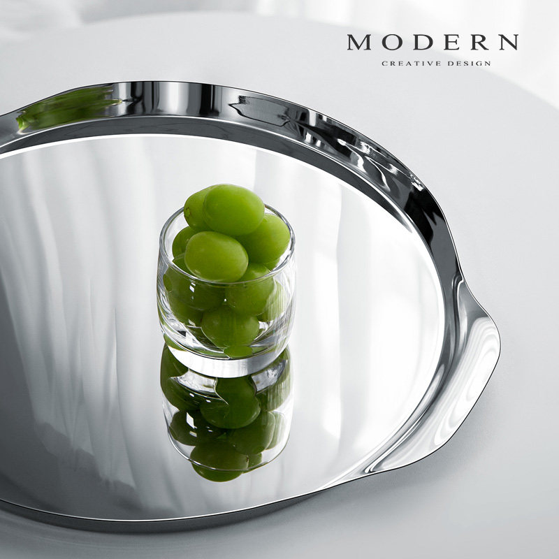 摩登MODERN北欧西餐餐盘轻奢不锈钢圆形酒店托盘家用酒具甜品盘