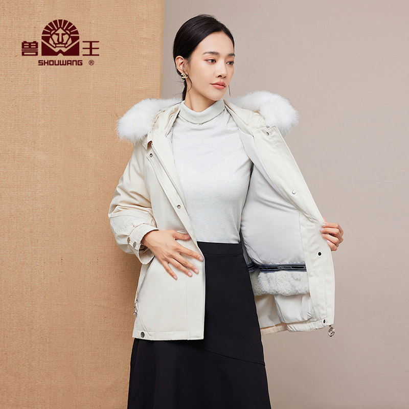 冬季 羽绒服女款 派克服内胆厚外套斜门襟可拆卸毛领短款 FDR官方店