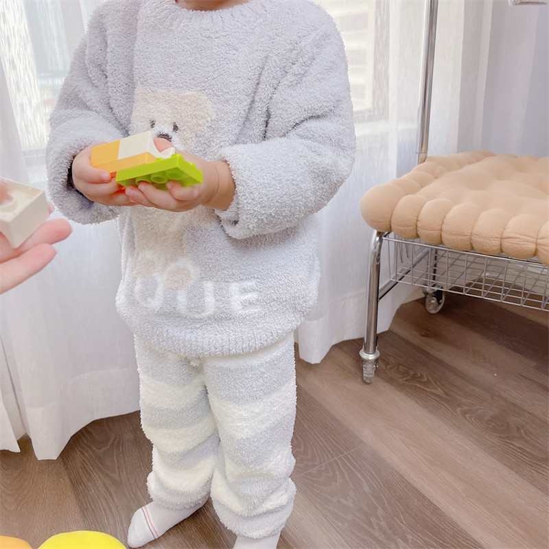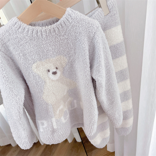亲子款 秋冬保暖软绵绵家居服睡衣软萌小熊可爱圆领儿童加厚套装