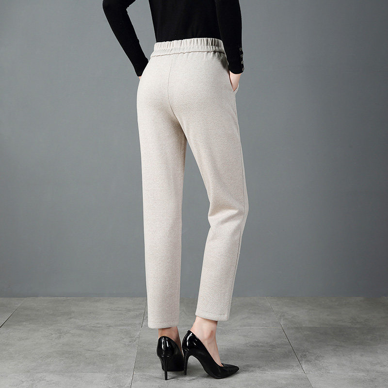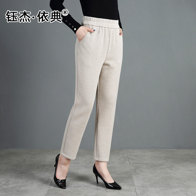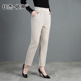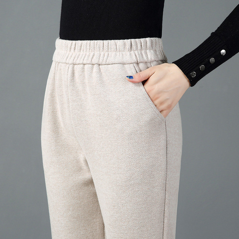 A1039 外出妈妈暖仿呢温色秋冬季 人字纹直筒棉女裤 2022年百搭时尚