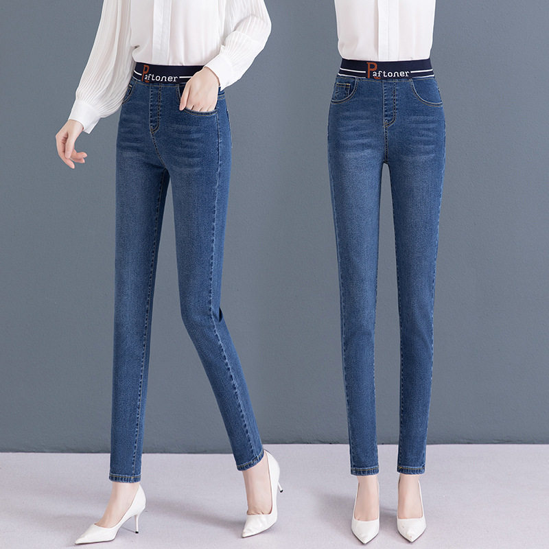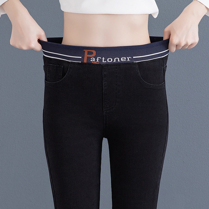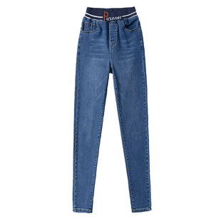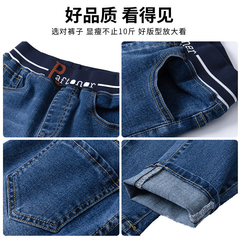 胖mm宽松收腹显瘦小脚裤 高腰弹力大码 女春秋2024新款 松紧腰牛仔裤