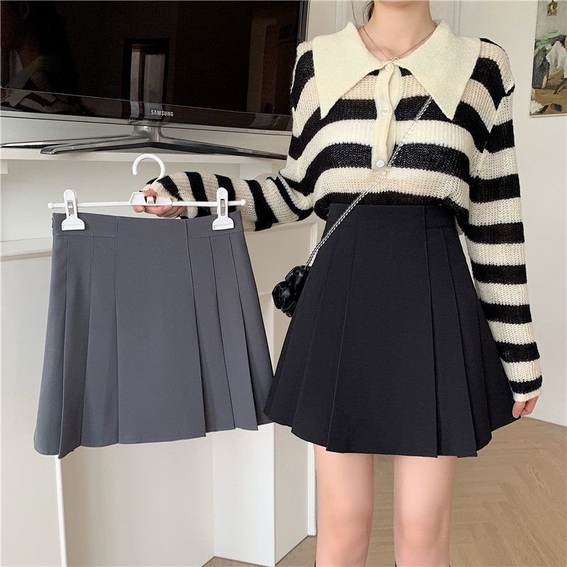 学院风防走光显瘦包臀裙 百褶裙韩版 a字短裙灰色半身裙春夏季 大码