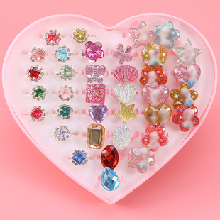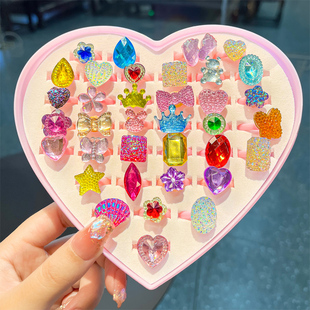 儿童戒指女童宝石钻石小孩公主可爱宝石钻石小戒子女宝宝女孩玩具