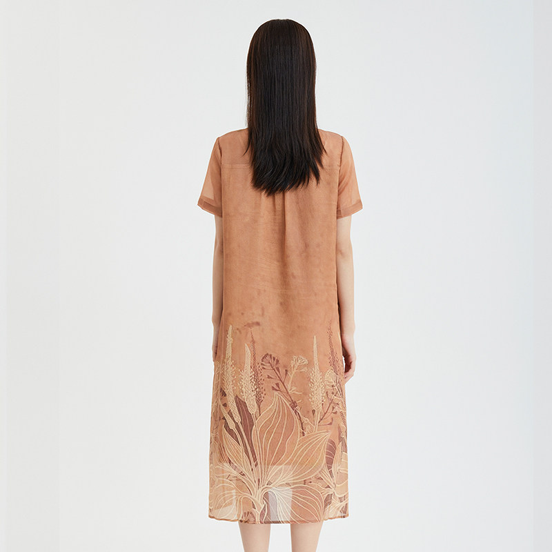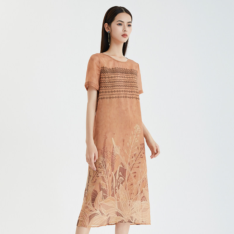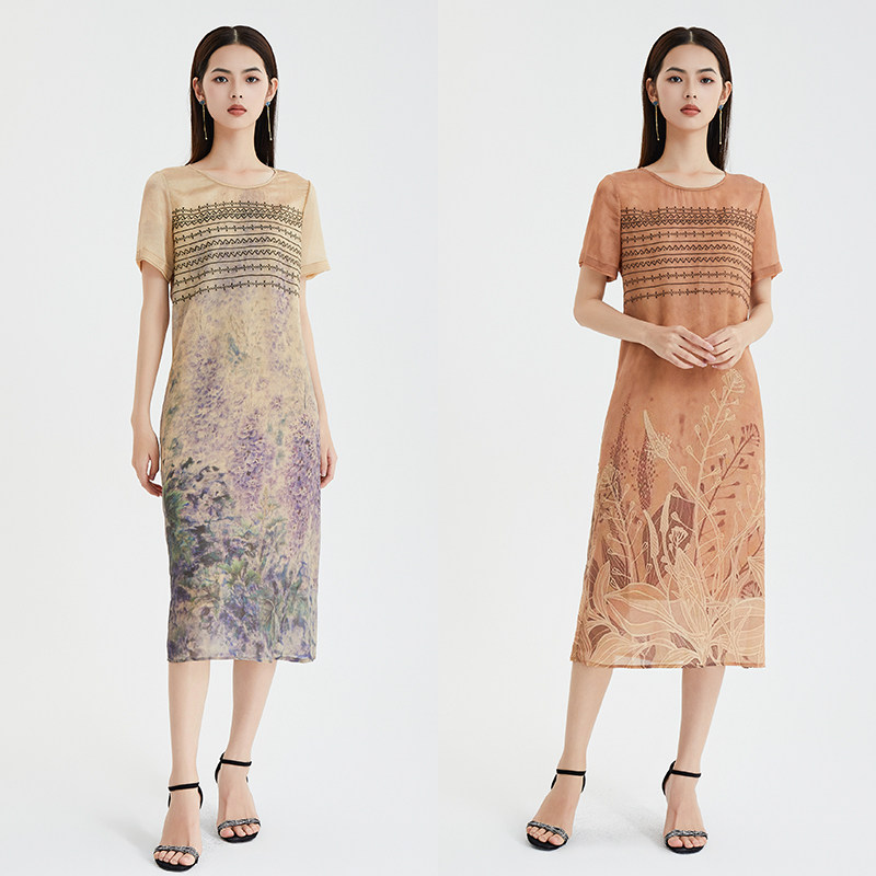 直身宽松长裙轻薄 纯色印花连衣裙短袖 马天奴2023年夏季 新款