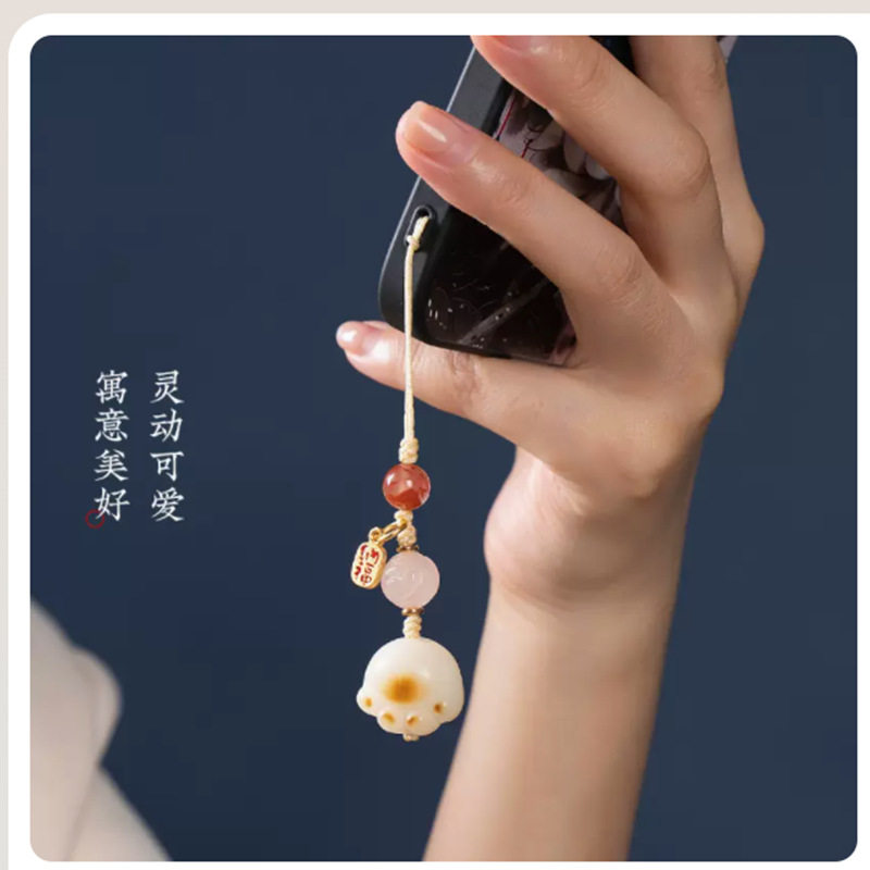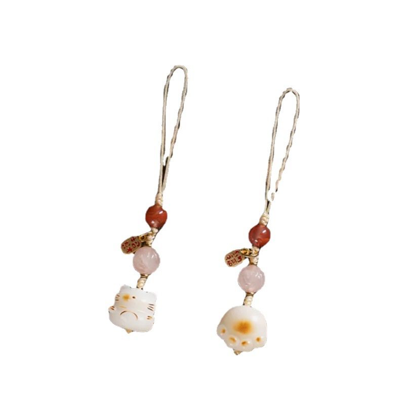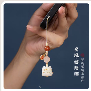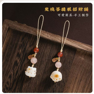 天然白菩提根炭烧招财猫咪猫爪汽车钥匙扣情侣款 精致饰品钥匙配饰