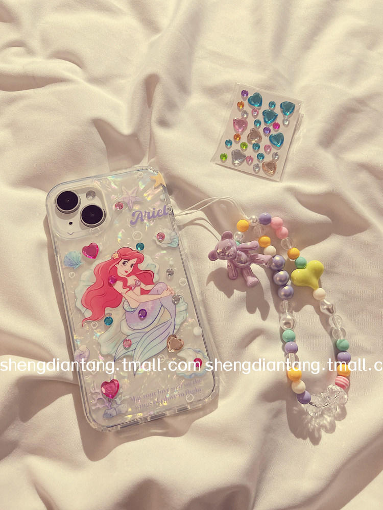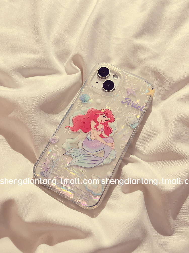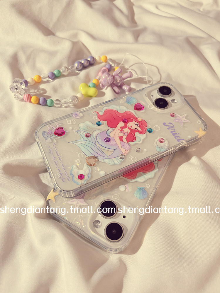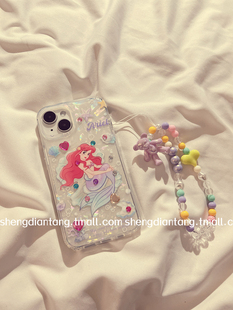 双层贝壳纹美人鱼公主适用苹果14ProMax手机壳iphone13新款 13promax软硅胶保护套 14可爱少女11链条12高级女款