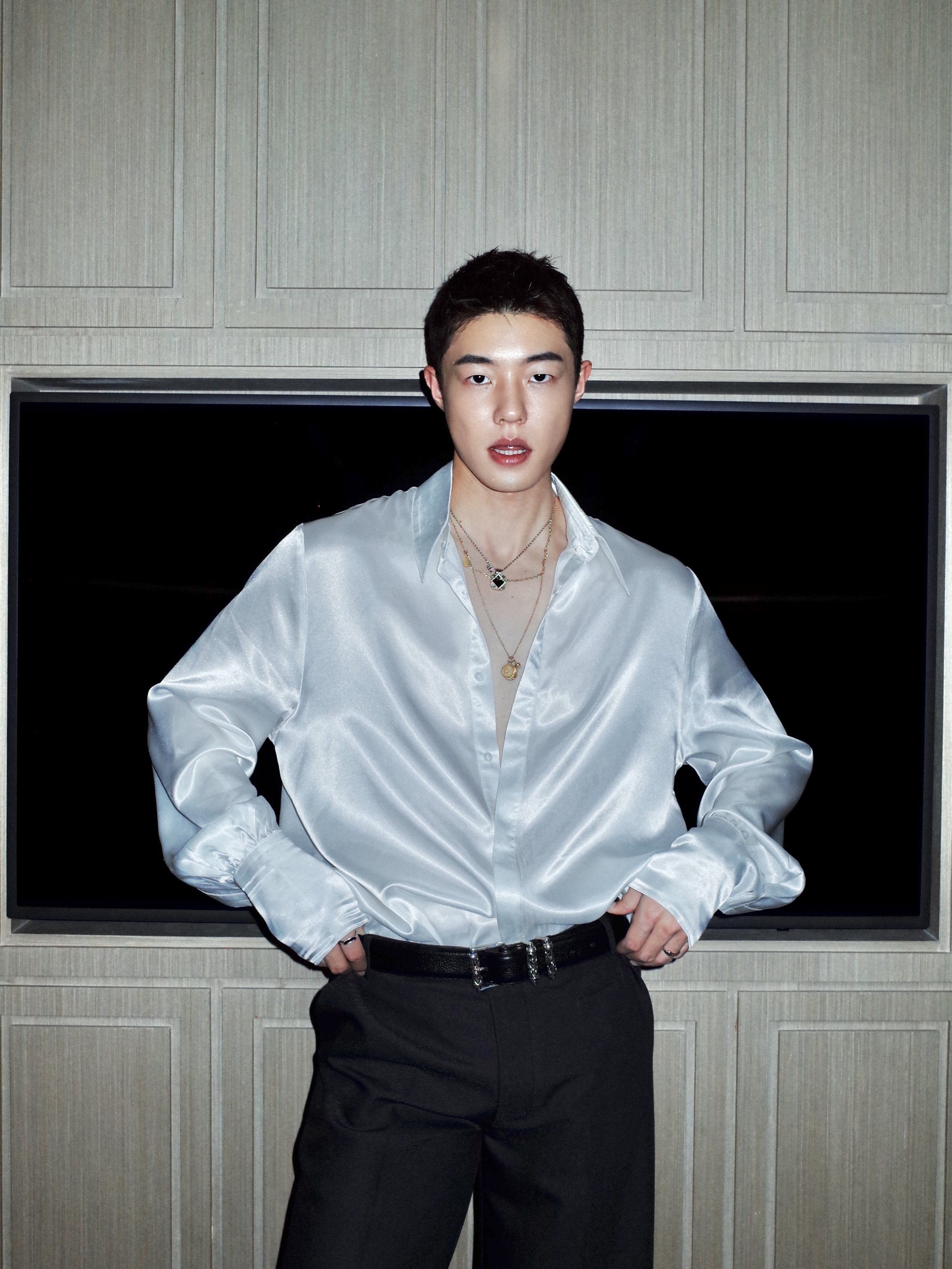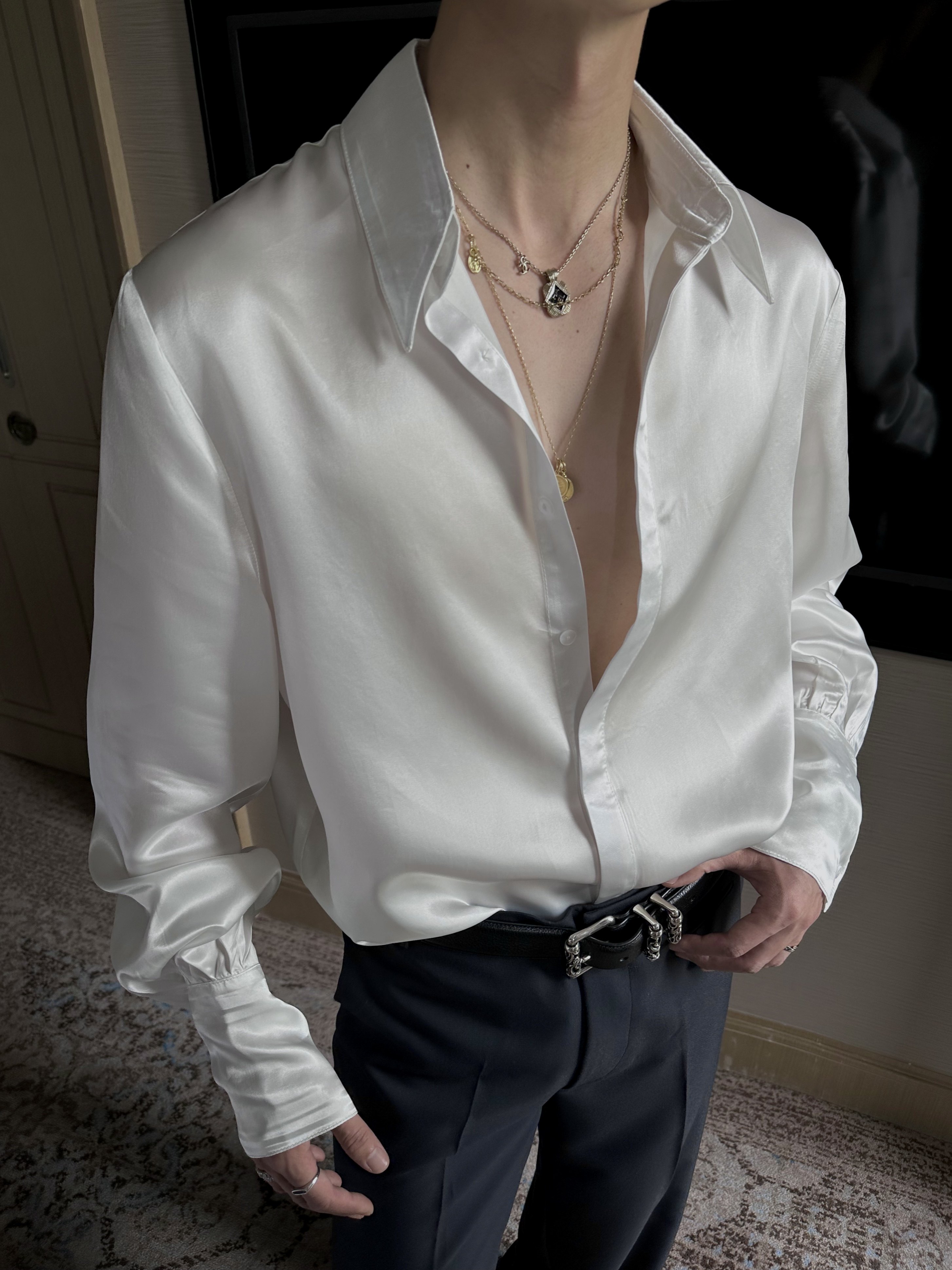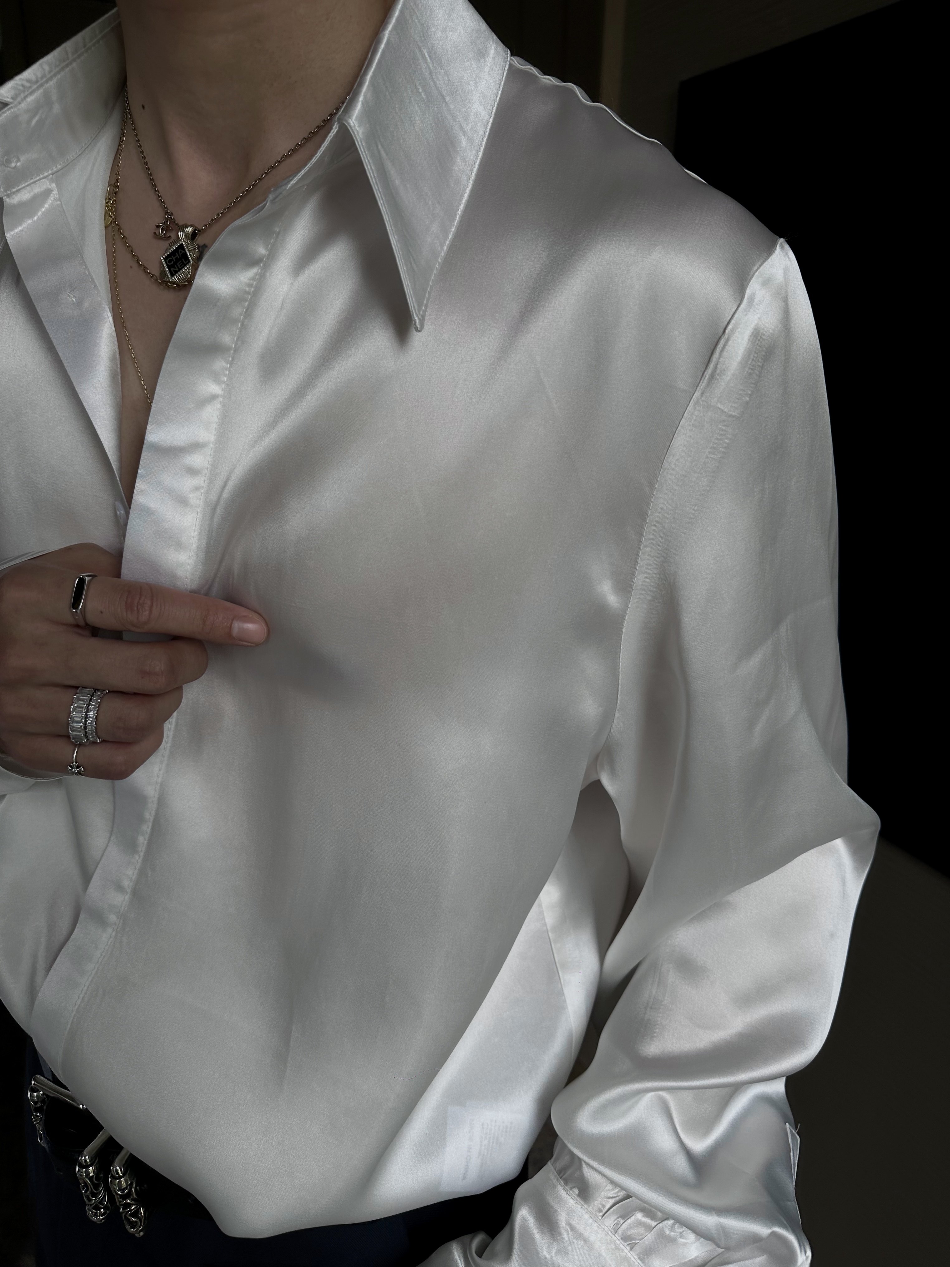 衬衫 weave 复古缎面休闲质感白色长袖 月光少年 男 studio23春夏