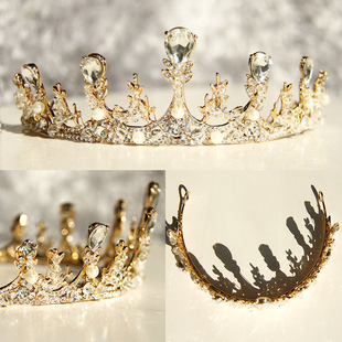 儿童皇冠头饰公主发饰女童皇冠小女孩生日演出发箍主持人王冠金色