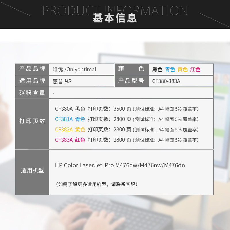 m76nw M476dw M476dn墨盒 易加粉CF380A 312A彩色激光打印机晒鼓碳粉盒 唯优适用惠普m476硒鼓 Pro