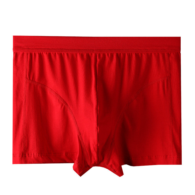 头 大红色四角短裤 CarreKenbt属马生肖内裤 男本命年桑蚕丝档平角裤