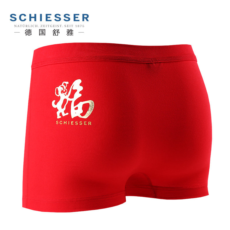 四角短裤 雅鹿本命年内裤 纯棉大红色礼物属马年结婚大码 平角裤 男士