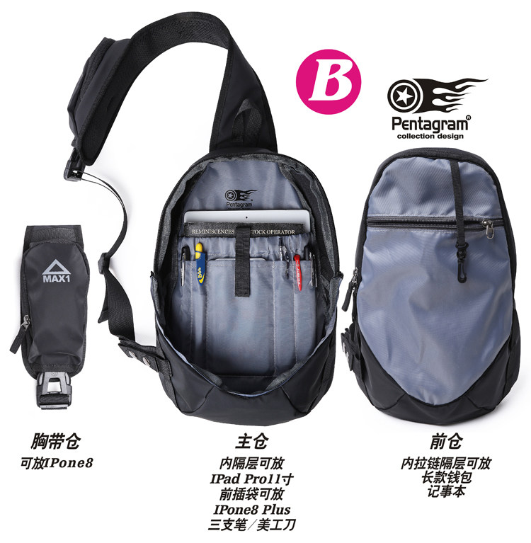 胸包男士 斜挎包单肩防水牛津布运动休闲小跨包背包男包包随身便携