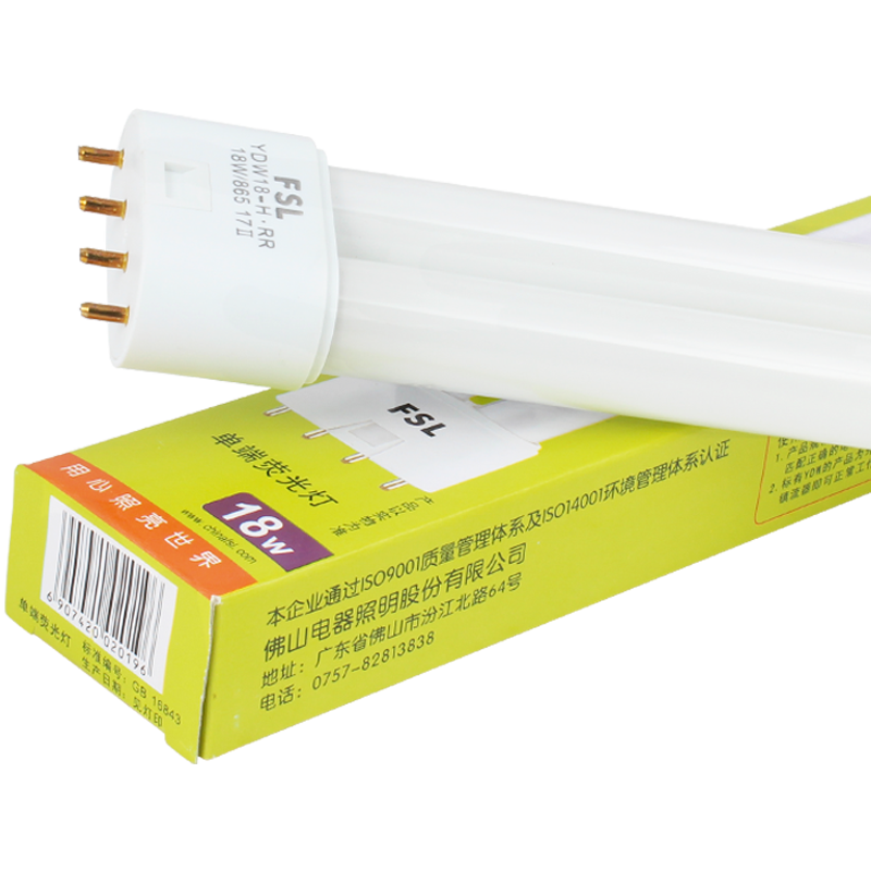 FSL佛山照明节能灯插管灯泡2针9W 13W筒灯横插2U插脚荧光灯管直管