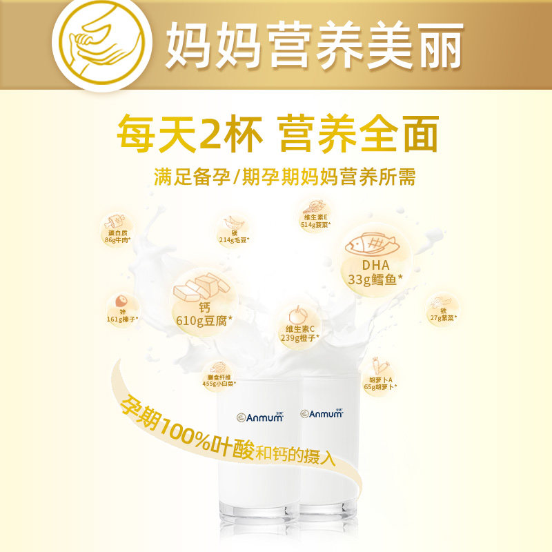 进口含叶酸营养奶粉含勺800g Anmum安满孕期备孕期港版 罐 自营