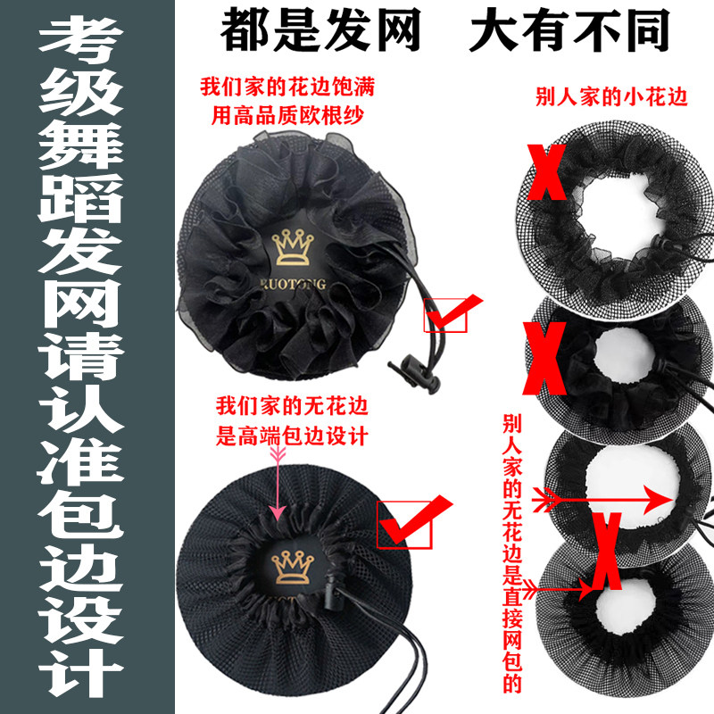 儿童舞蹈考级发网丸子头盘发器黑色芭蕾抽绳弹性大号护士空乘网兜