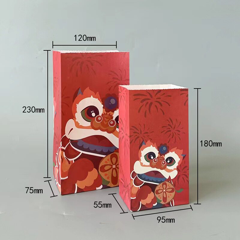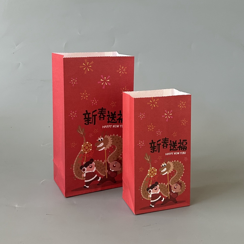 特价 包邮 礼品袋现货 无提手新年纸袋平口袋方底折口袋子国潮包装