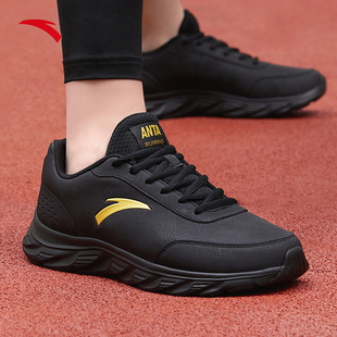 子 革面加绒软底舒适百搭户外运动鞋 安踏黑色耐磨复古跑步鞋 男冬季