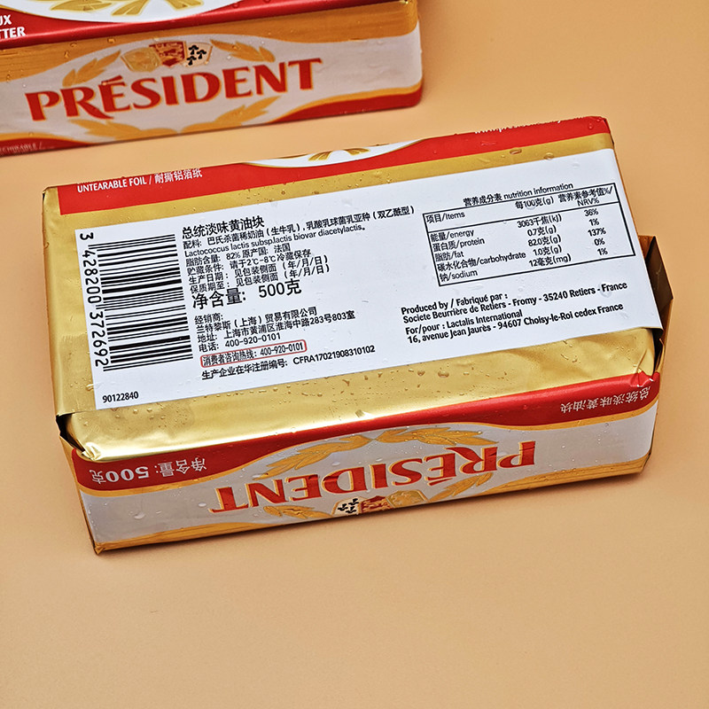 总统淡味黄油发酵动物黄油原味面包烘焙家用法国进口