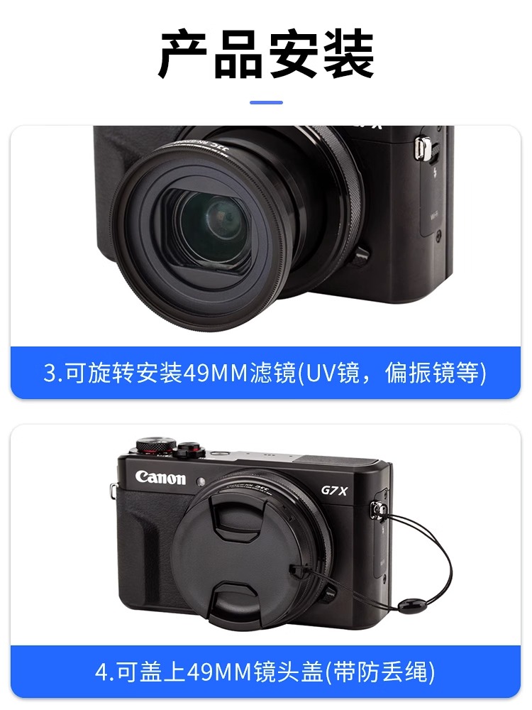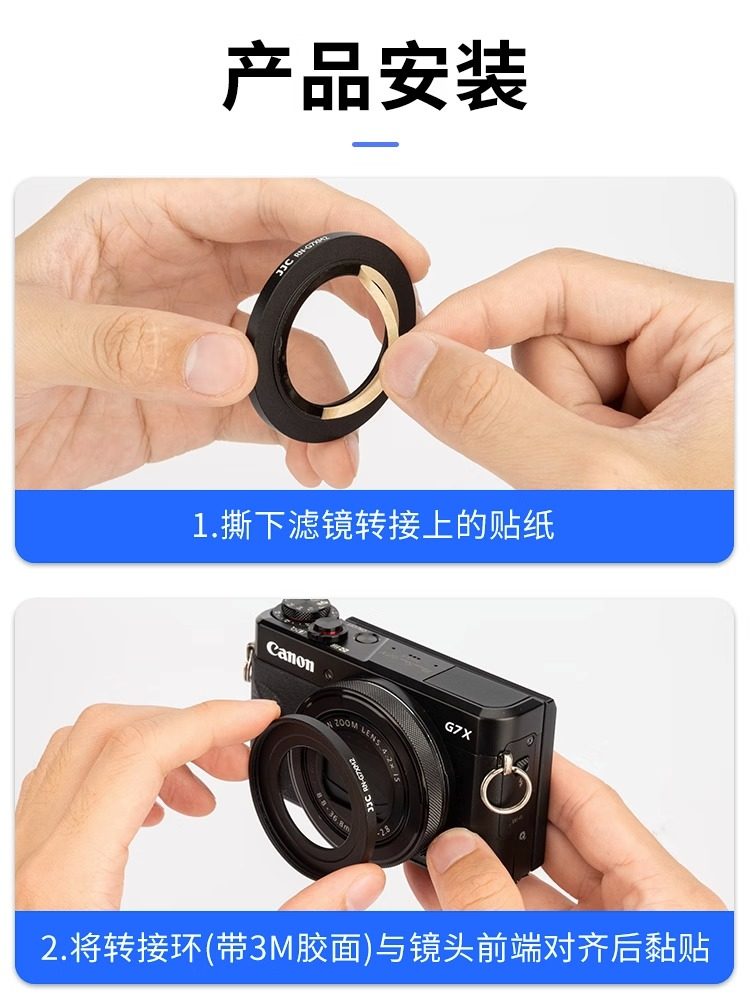 Mark G7XII G5X G5XII接圈可转接49mmUVCPL偏振镜ND减光镜 JJC适用佳能G7X3 G5X2 G7X2相机滤镜转接环G7X