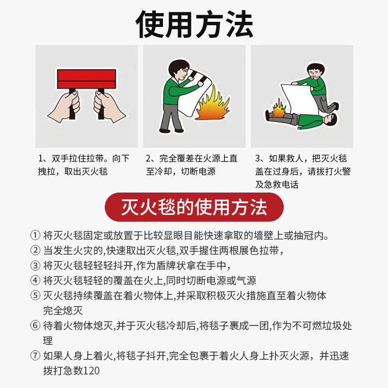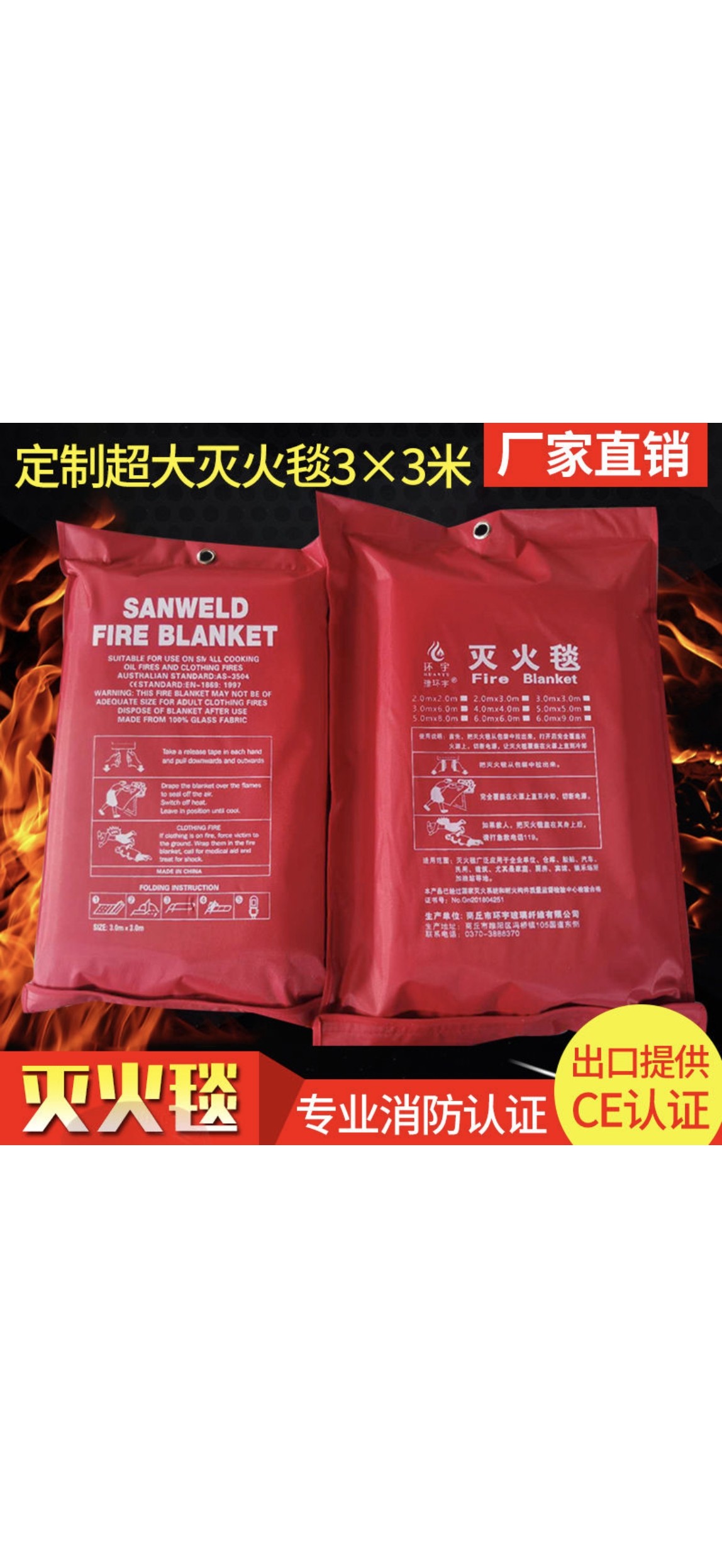 环宇3x3灭火毯4x4消防认证国标家庭厨房专用硅胶玻璃纤维防火毯