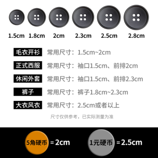 圆形黑色大衣纽扣男女西装 西服外套扣子衣服风衣上衣睡衣钮扣配件
