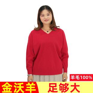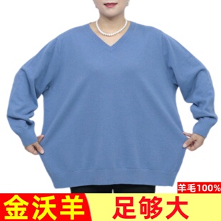 特超胖妈妈装 女装 毛衣V领中老年863 加肥加大码 200斤100%纯羊毛衫