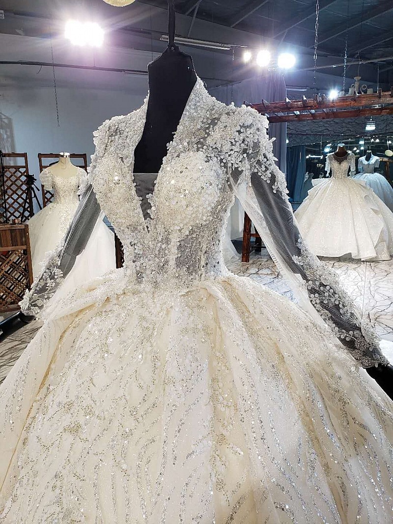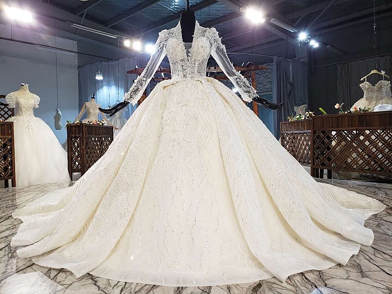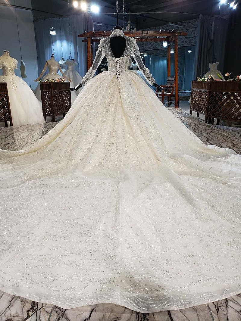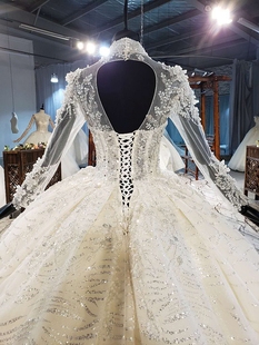 2020新款 大拖尾公主奢华新娘婚纱礼服99939 宫廷抖音网红包肩长袖