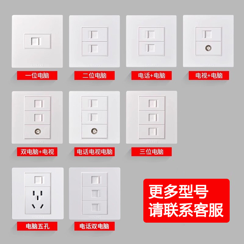 德力西六类网线插座三位网络双网口暗装 宽带千兆86型家用电脑面板