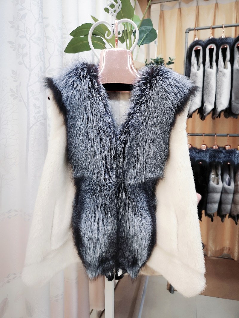 进口整貂十字貂皮草外套貂皮马甲狐狸毛领背心年轻款 2020新款 女装