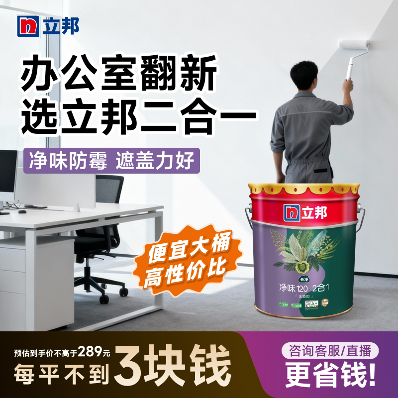 立邦净味120二合一内墙乳胶漆室内墙面漆自刷涂料油漆家用防潮漆