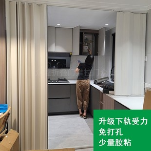 pvc折叠门 厨房隔断卫生间卧室临时通燃气简易伸缩隐形无轨推拉门