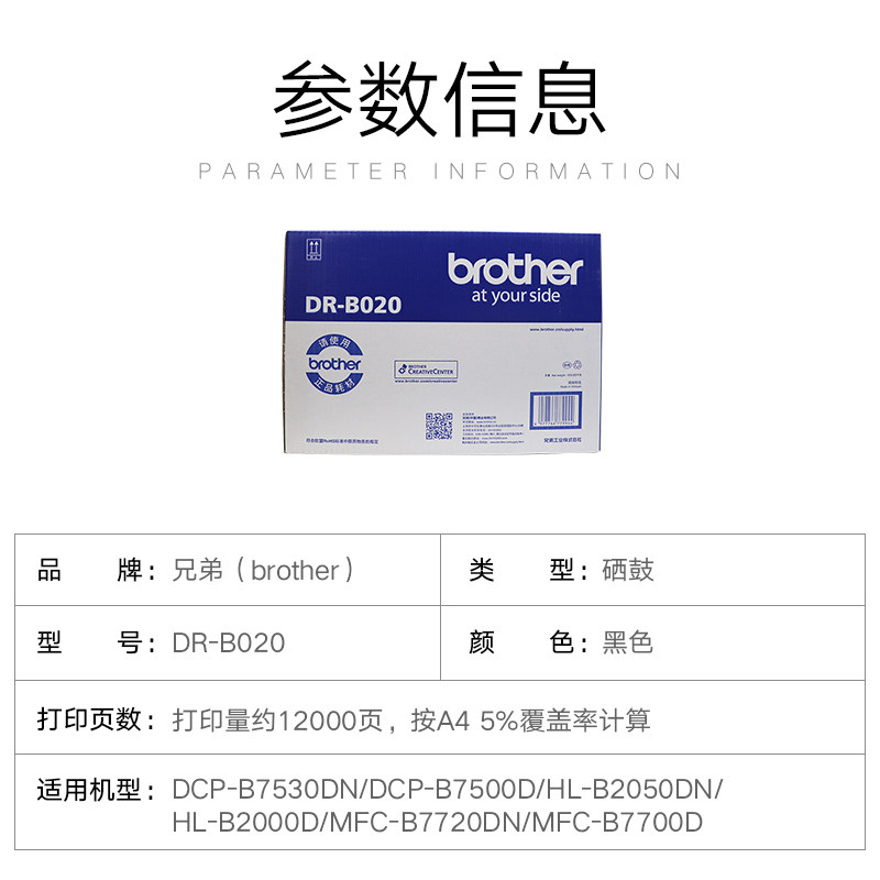 B020原装 B2000D 硒鼓适用于B7530DN B7700D B2050 B7500D 兄弟DR