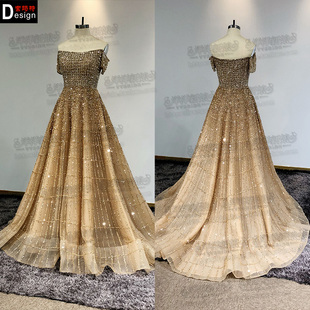 结婚答谢宴敬酒服zuhair 一字肩显瘦名媛生日长礼服 murad2020新款