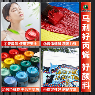 马利牌丙烯颜料大瓶白色黑色金色墙绘专用防水工具染料涂色画画墙画手绘彩绘不掉色涂鸦防晒儿童diy套装 无毒