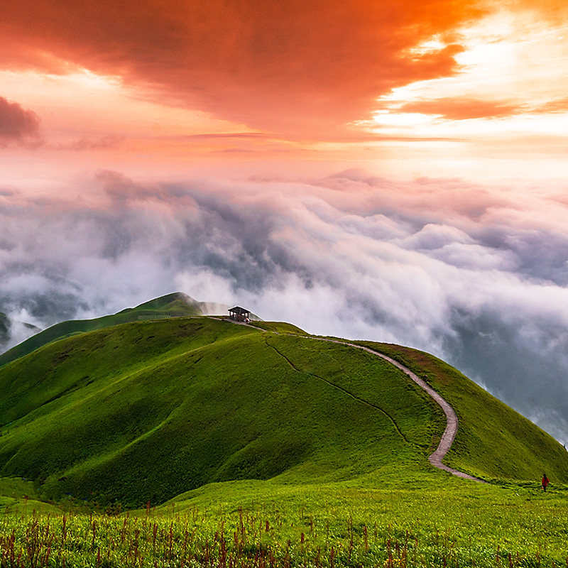 金顶 萍乡武功山2天1晚跟团游徒步绝望坡 车站接送户外领队 反穿